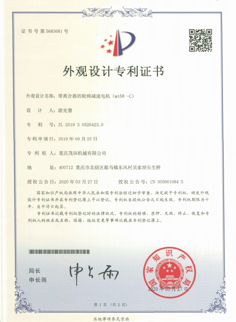 重慶茂田機(jī)械有限公司是國家級(jí)小巨人企業(yè)、國家高新技術(shù)企業(yè)、重慶市專精特新企業(yè)、重慶市知識(shí)產(chǎn)權(quán)優(yōu)勢企業(yè),致力于現(xiàn)代化山地農(nóng)業(yè)機(jī)械、各類非標(biāo)減速電機(jī)及其控制系統(tǒng)的研發(fā)、生產(chǎn)、銷售。擁有重慶市市級(jí)研發(fā)平臺(tái)1個(gè) 目前研發(fā)、生產(chǎn)、銷售產(chǎn)品廣泛應(yīng)用于農(nóng)業(yè)機(jī)械、醫(yī)療康復(fù)設(shè)備、交通代步工具、智能搬運(yùn)設(shè)備、以及機(jī)器人動(dòng)力系統(tǒng)等領(lǐng)域。我們的產(chǎn)品具有完整的自主知識(shí)產(chǎn)權(quán),擁有多項(xiàng)專利技術(shù)及“重慶